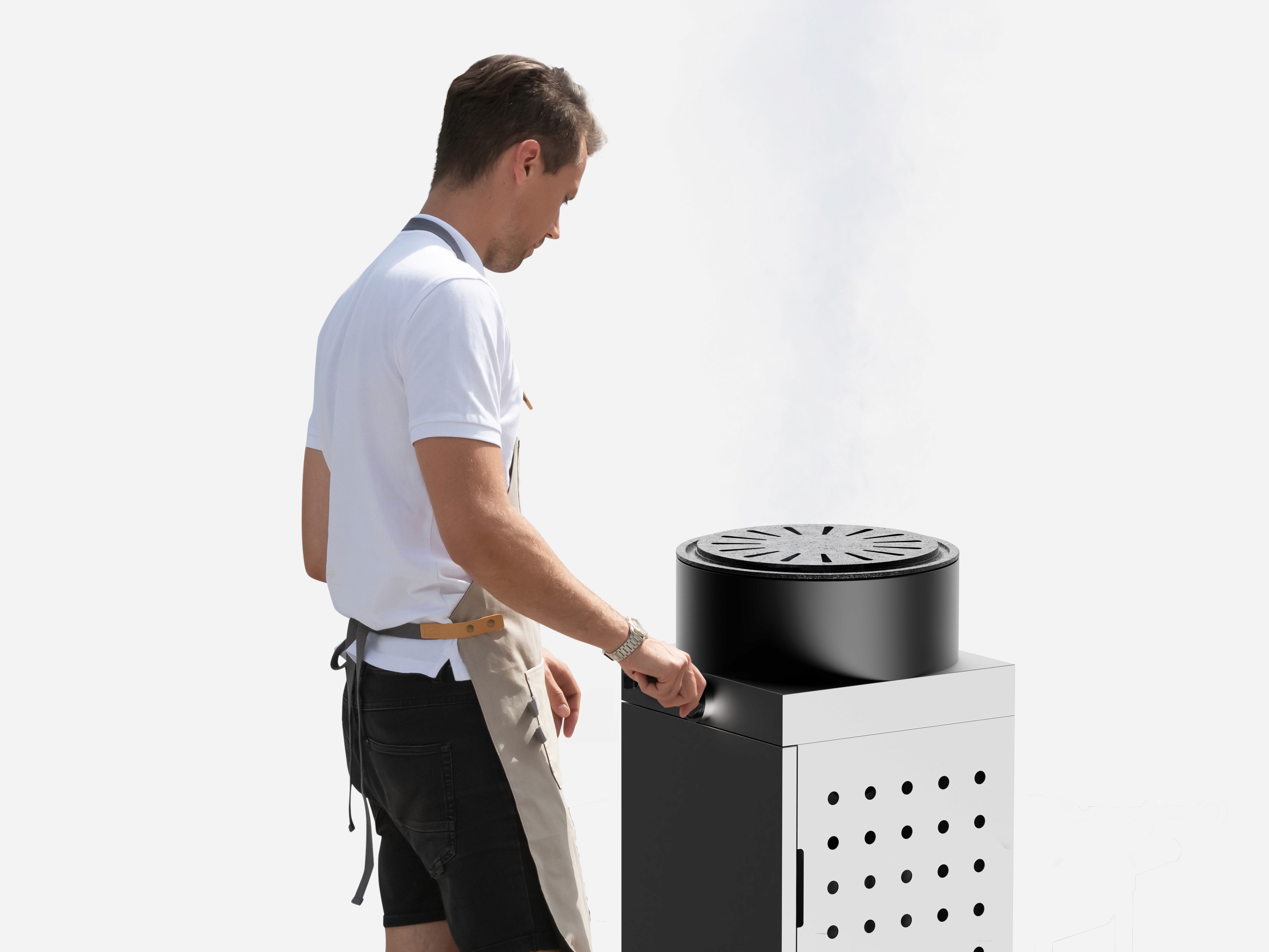 This design reimagines the propane grill as a refined, architectural object rather than a purely utilitarian appliance. The rectangular body conceals the propane tank, presenting a calm, monolithic form that integrates naturally into outdoor environments.